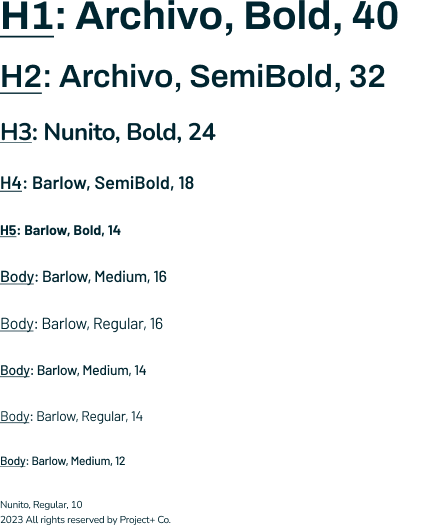 Before beginning wireframing for our prototype, I as the head designer developed the brand’s image by choosing colors, typefaces, and a logo that aligned with the values we defined for Project +.